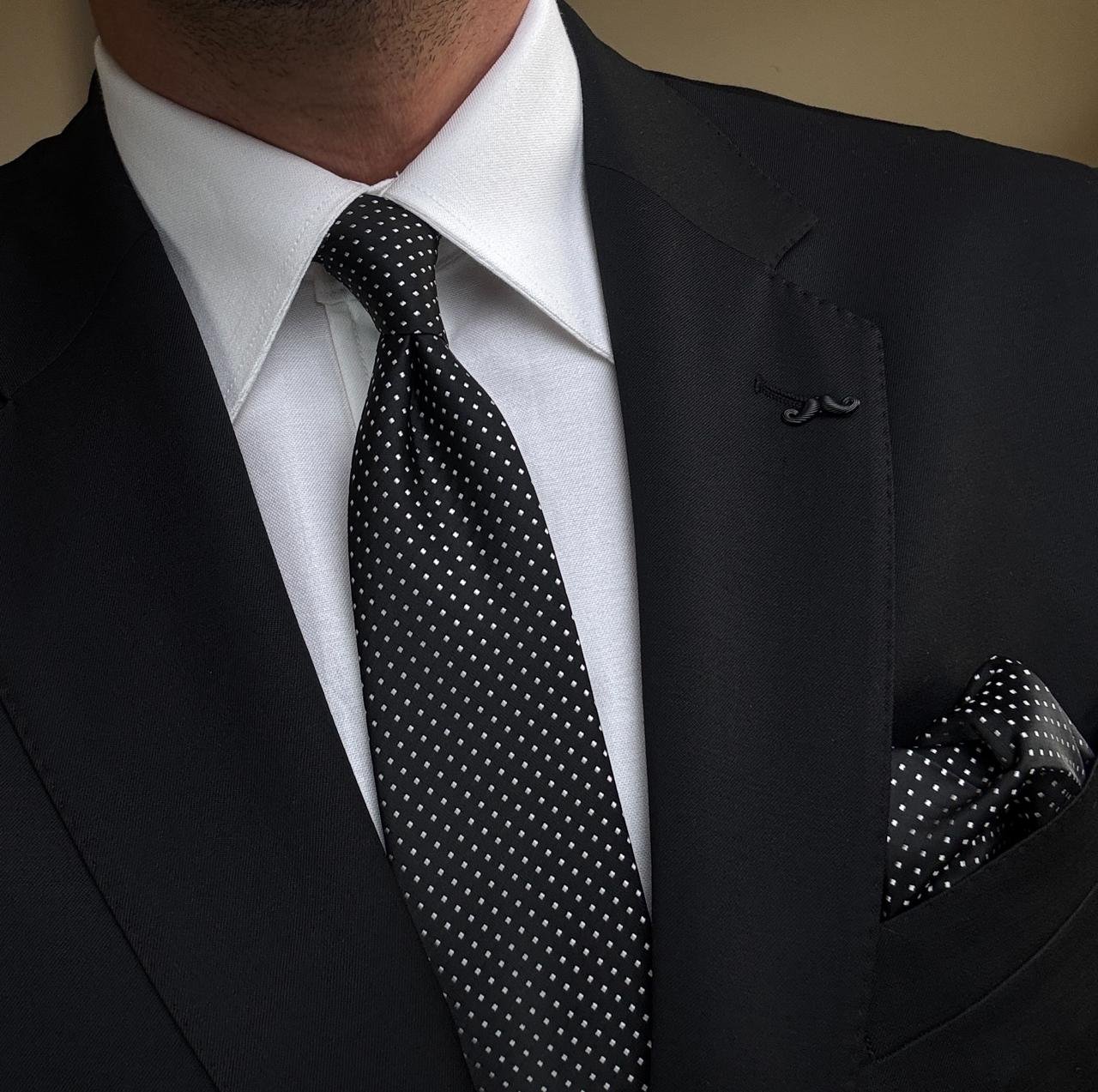 Black with White Dots Tie – 7 cm – With Pocket Square