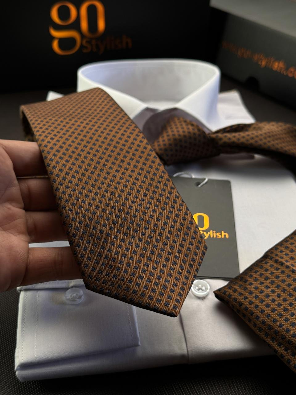 Be the first to review “Copper with Blue Dots Tie – 7 cm – With Pocket Square” Cancel reply