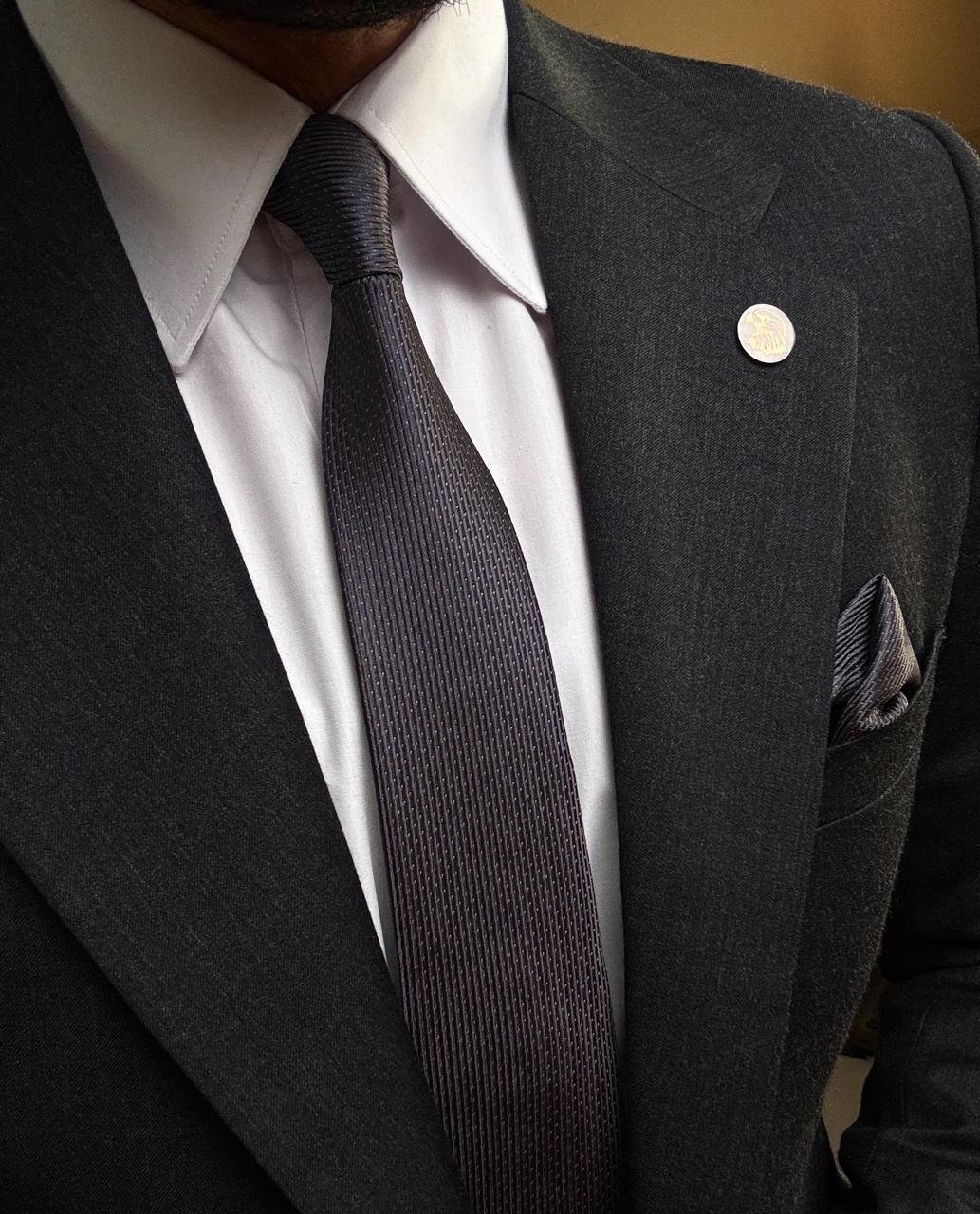 Dark Gray with Orange Dots Tie – 7 cm – With Pocket Square