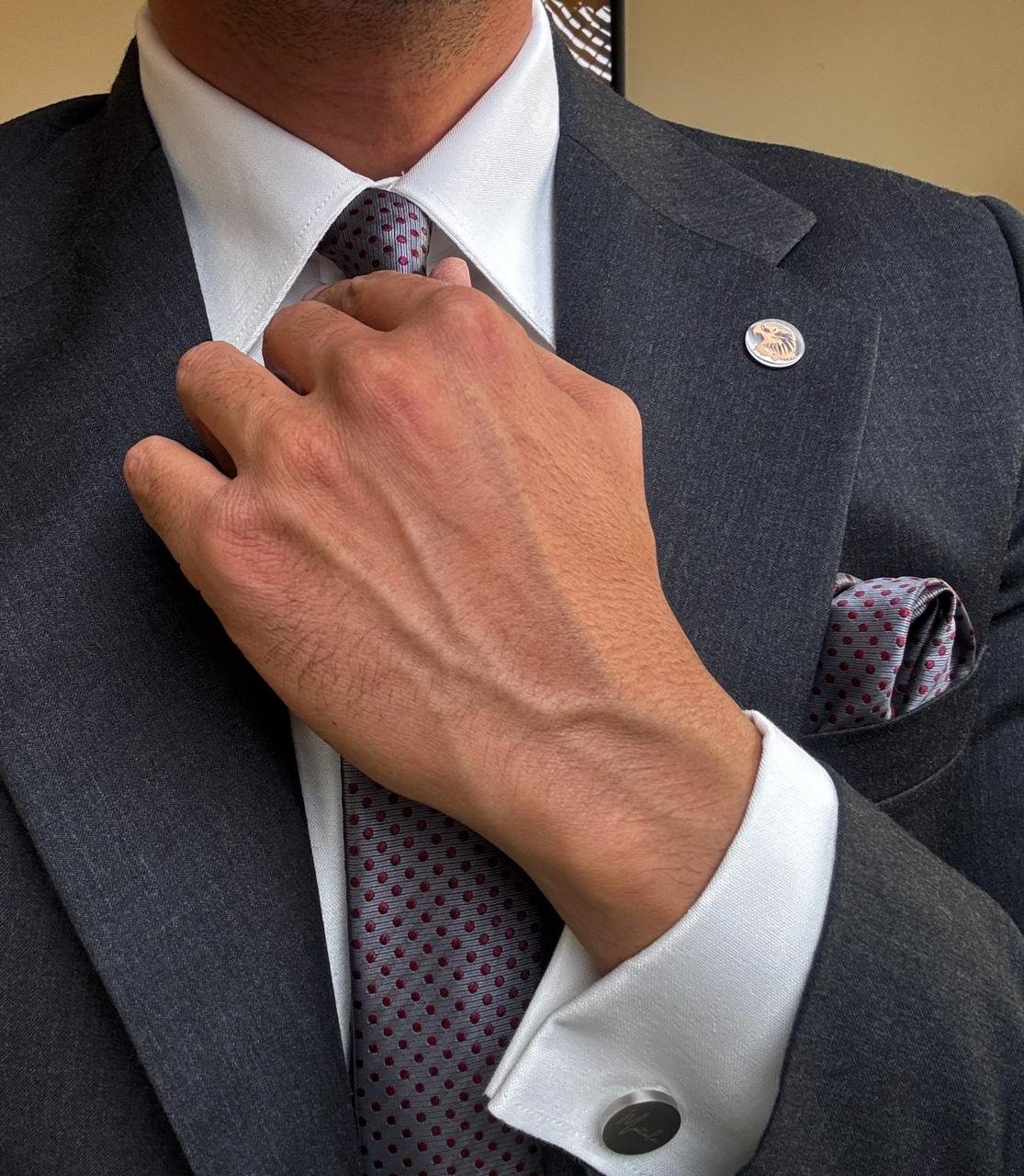 Be the first to review “Gray with Burgundy Dots Tie – 7 cm – With Pocket Square”