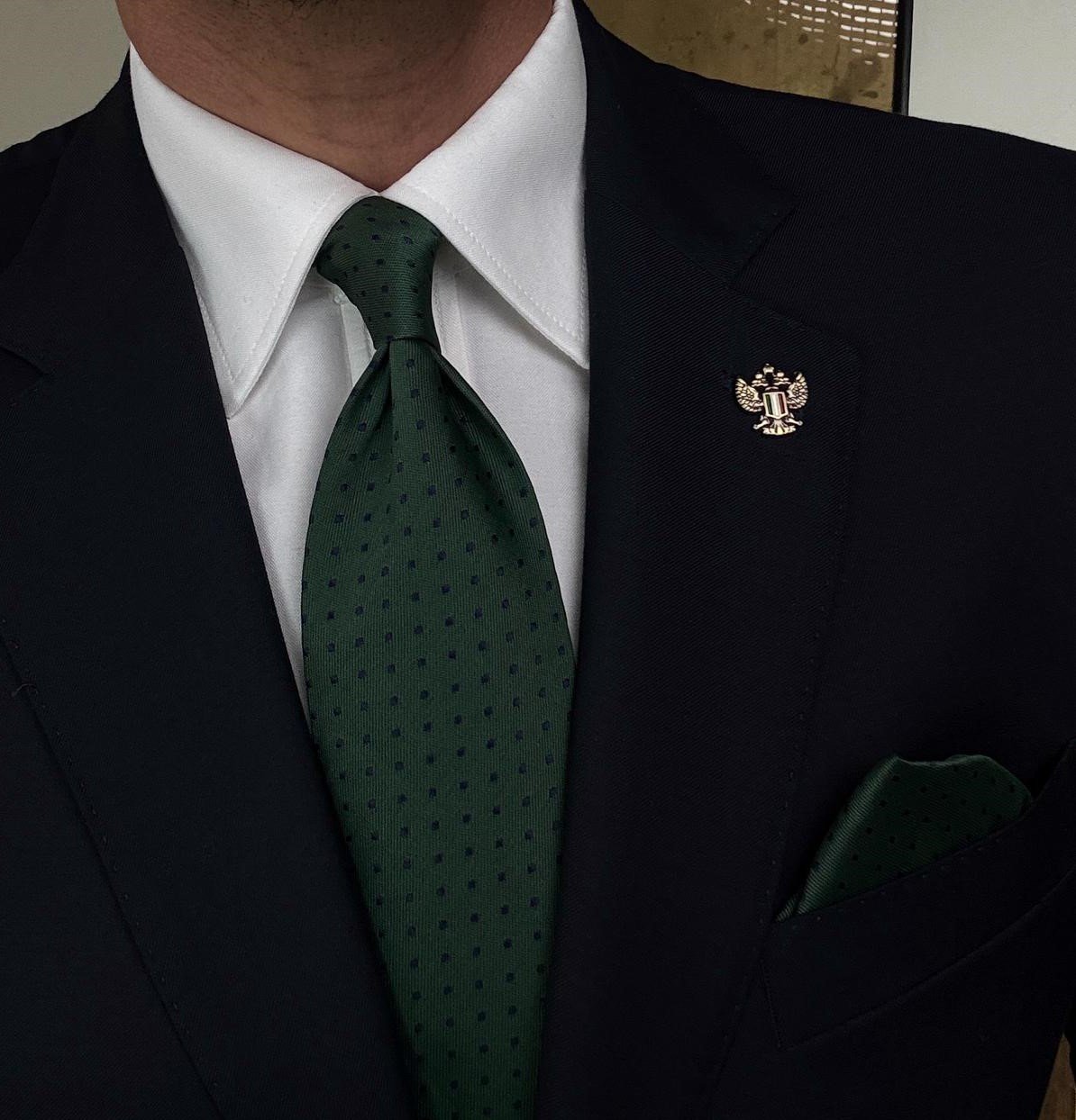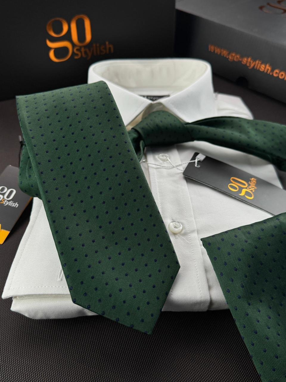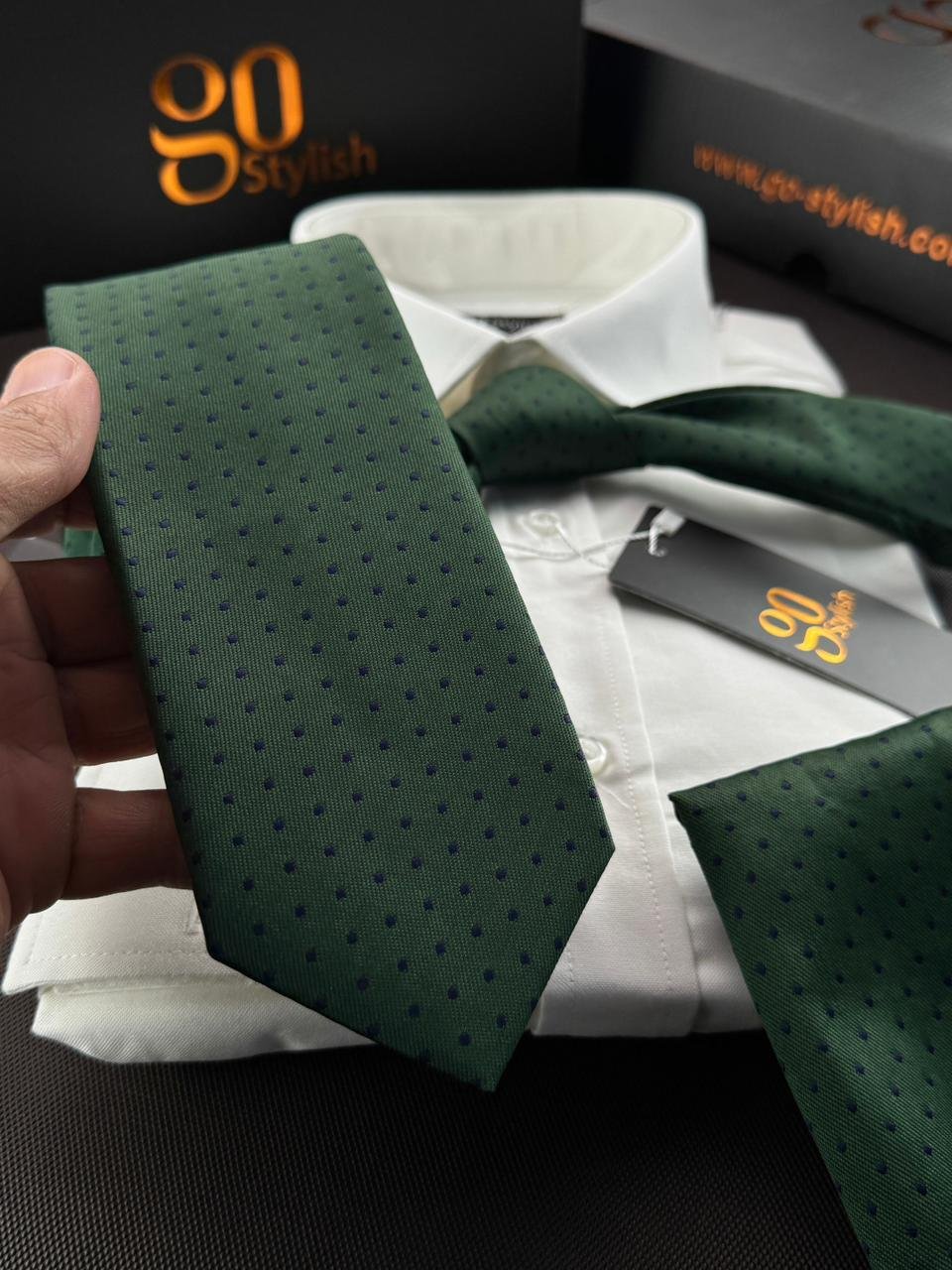 Dark Green with Blue Dots Tie – 8 cm – With Pocket Square