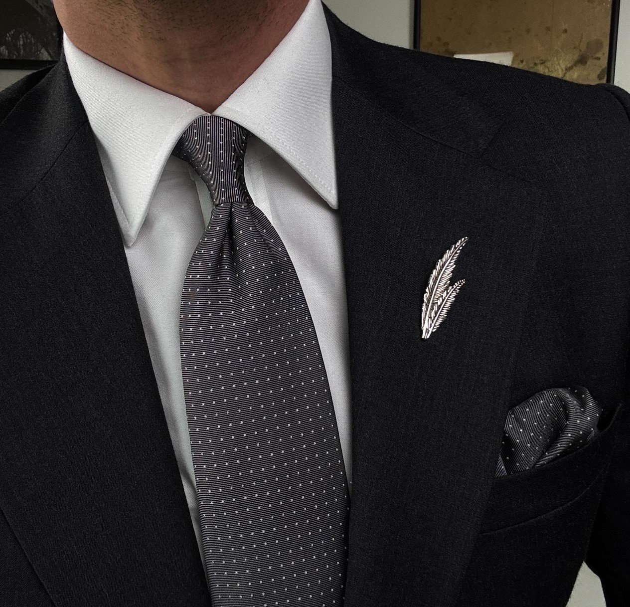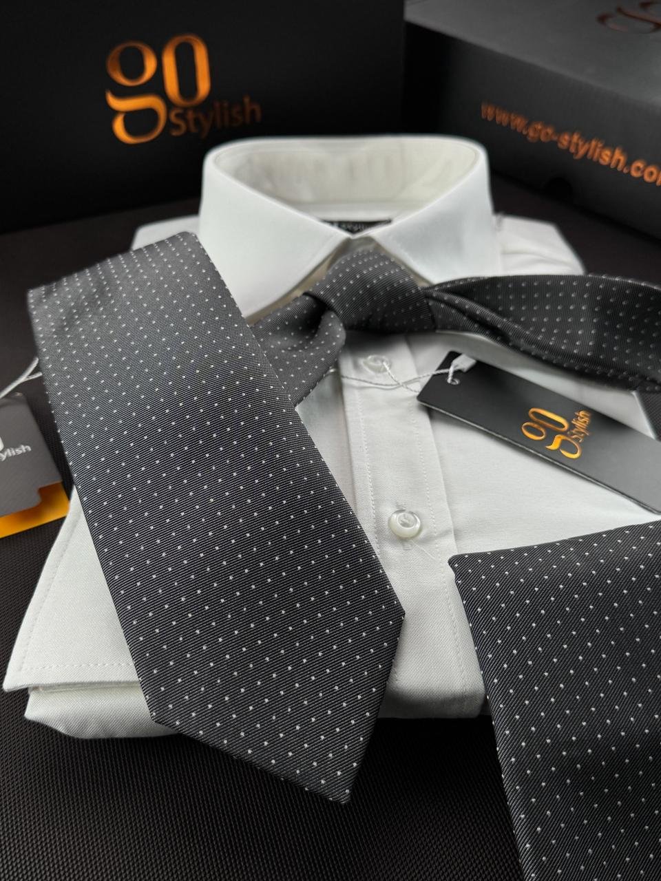 Gray Mini White Dots Tie – 8 cm – With Pocket Square