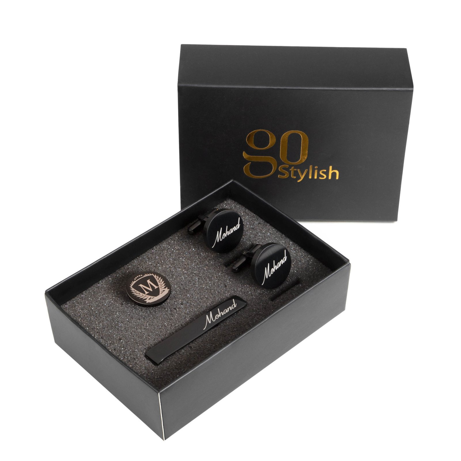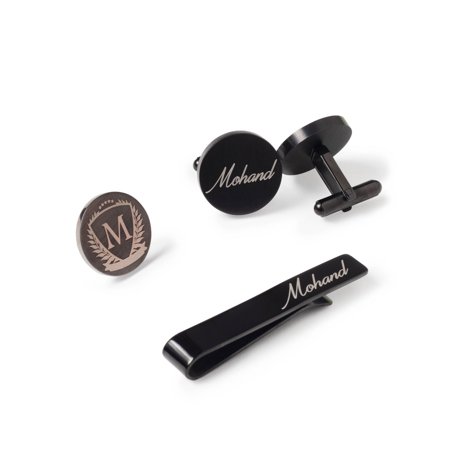 Tie Bar + Pair of Cufflinks (Round) + Lapel Pin