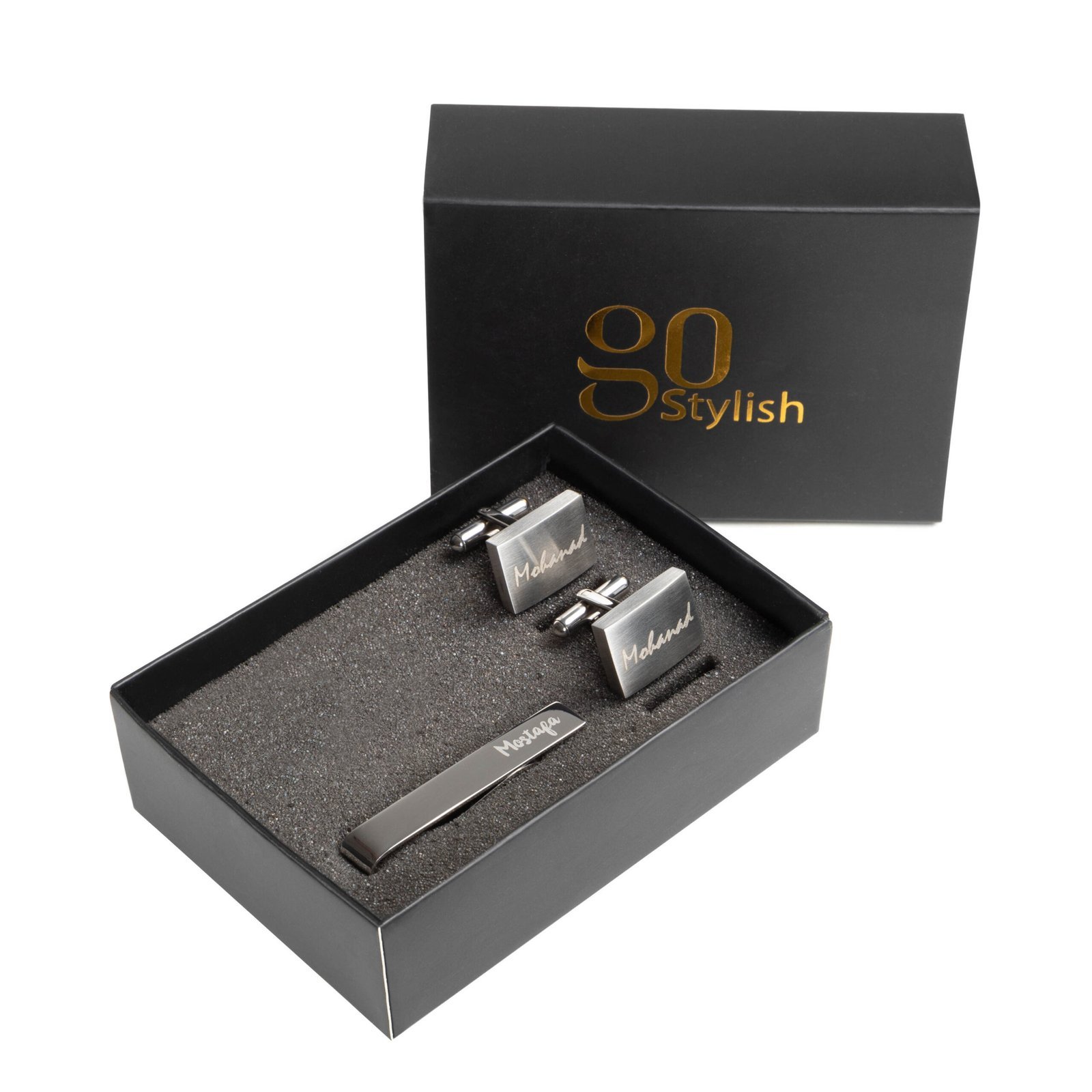 Be the first to review “Tie Bar + Cufflinks – Silver – Laser Engraving”