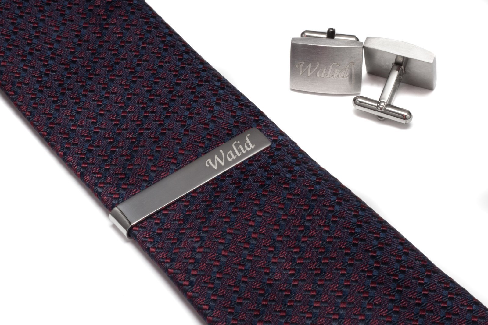 Tie Bar + Cufflinks – Silver – Laser Engraving