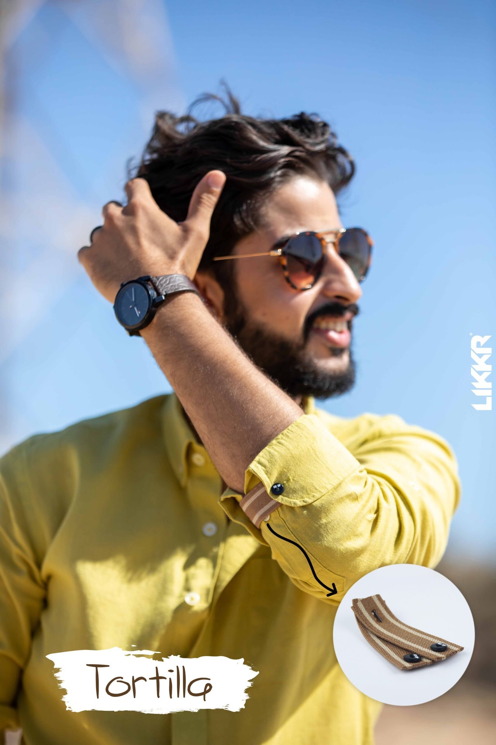GO UP is an extraordinary accessory that allows you to keep the sleeves of the shirt turned up in a practical, comfortable and elegant. Bright and fashionable colors intertwine on an extensible ribbon and together with a button in true mother of pearl, bright and refined, give life to a unique creation of its kind.
