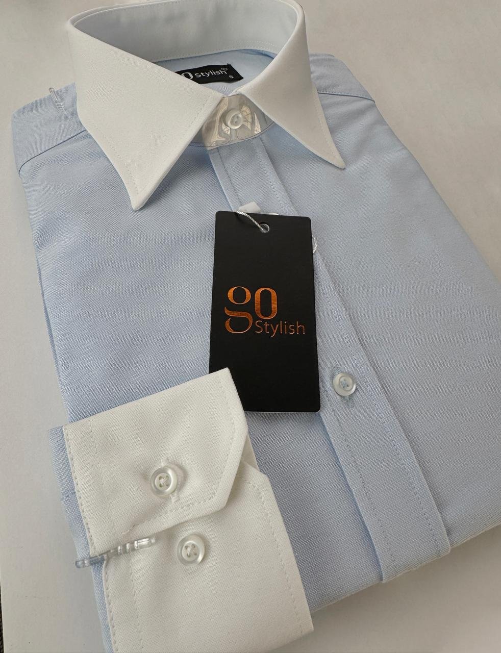 White Blue Oxford Business Shirt With MDC